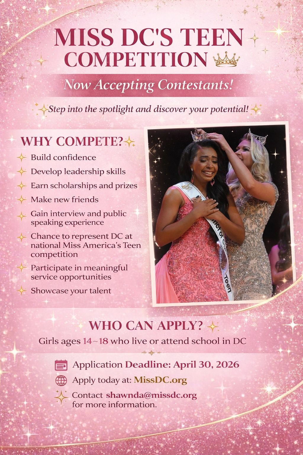 Blake Hart was crowned Miss DC's Teen 2025. At just 17 years old and a recent high school graduate, she is recognized for her curiosity, kindness, and drive. As a student-athlete and classical pianist, Blake founded the initiative “Ditch the Clique” to inspire connection over comparison. With over 1M views on TikTok and a passion for adventure, Blake balances her ambition with authenticity—whether she’s leading in the classroom, camping with lions, or running a standout lemonade stand. She plans to pursue a scholarship program in business, attend law school, and ultimately become a venture capitalist. Blake is dedicated to making others feel seen and supported, believing that true leadership begins with listening and uplifting others. Follow her at @maoteendc! Blake's talent: Piano. Community Service Initiative: Ditch The Clique: Make Your Own Path.